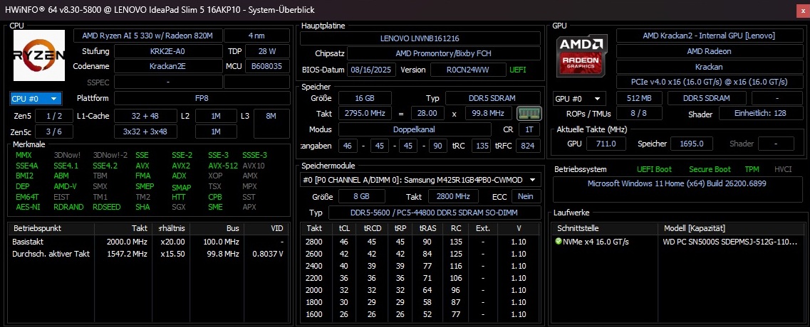 | Lenovo IdeaPad Slim 5 16IRU9 (Angelbird AV Pro V60) | |
