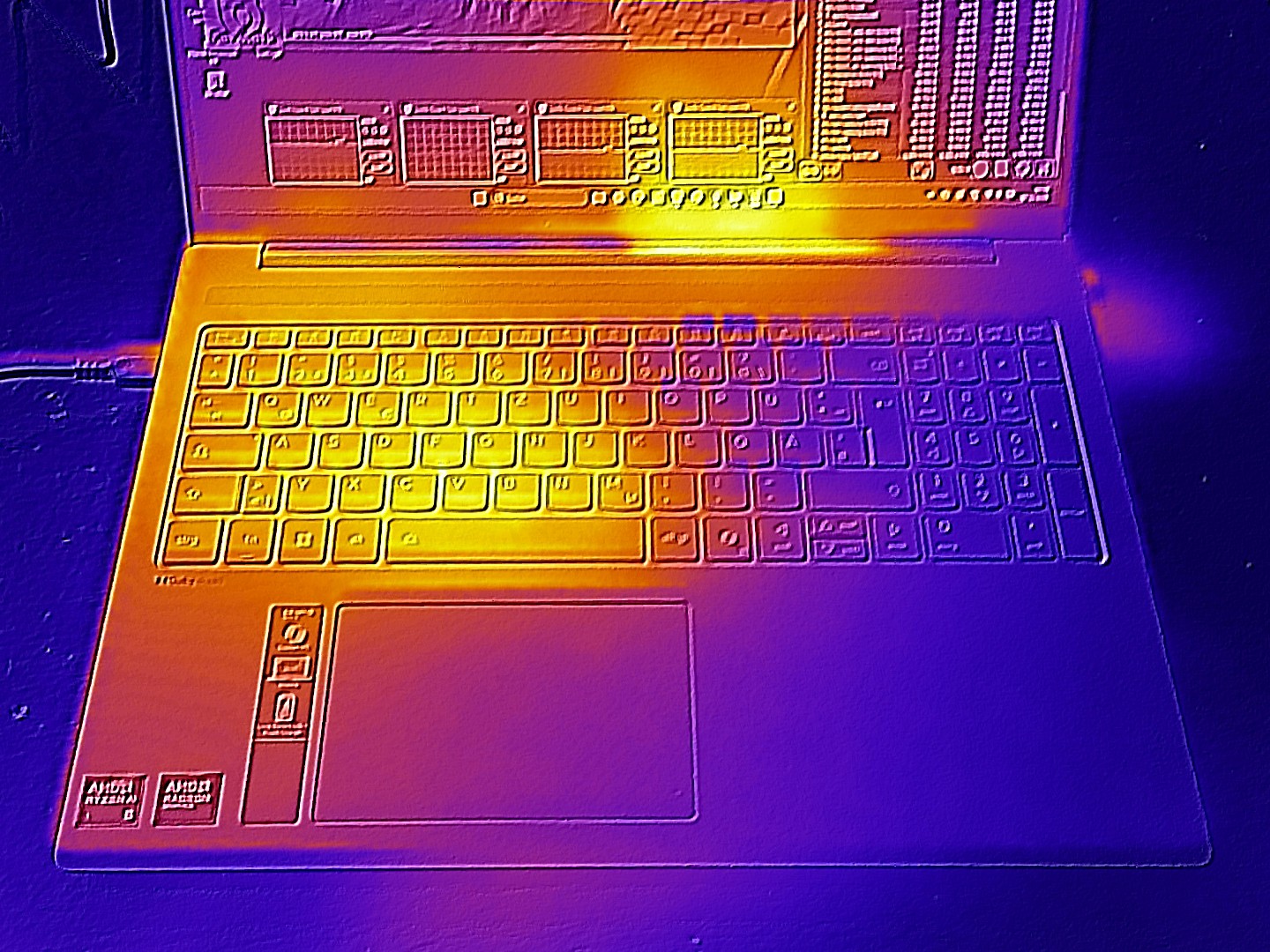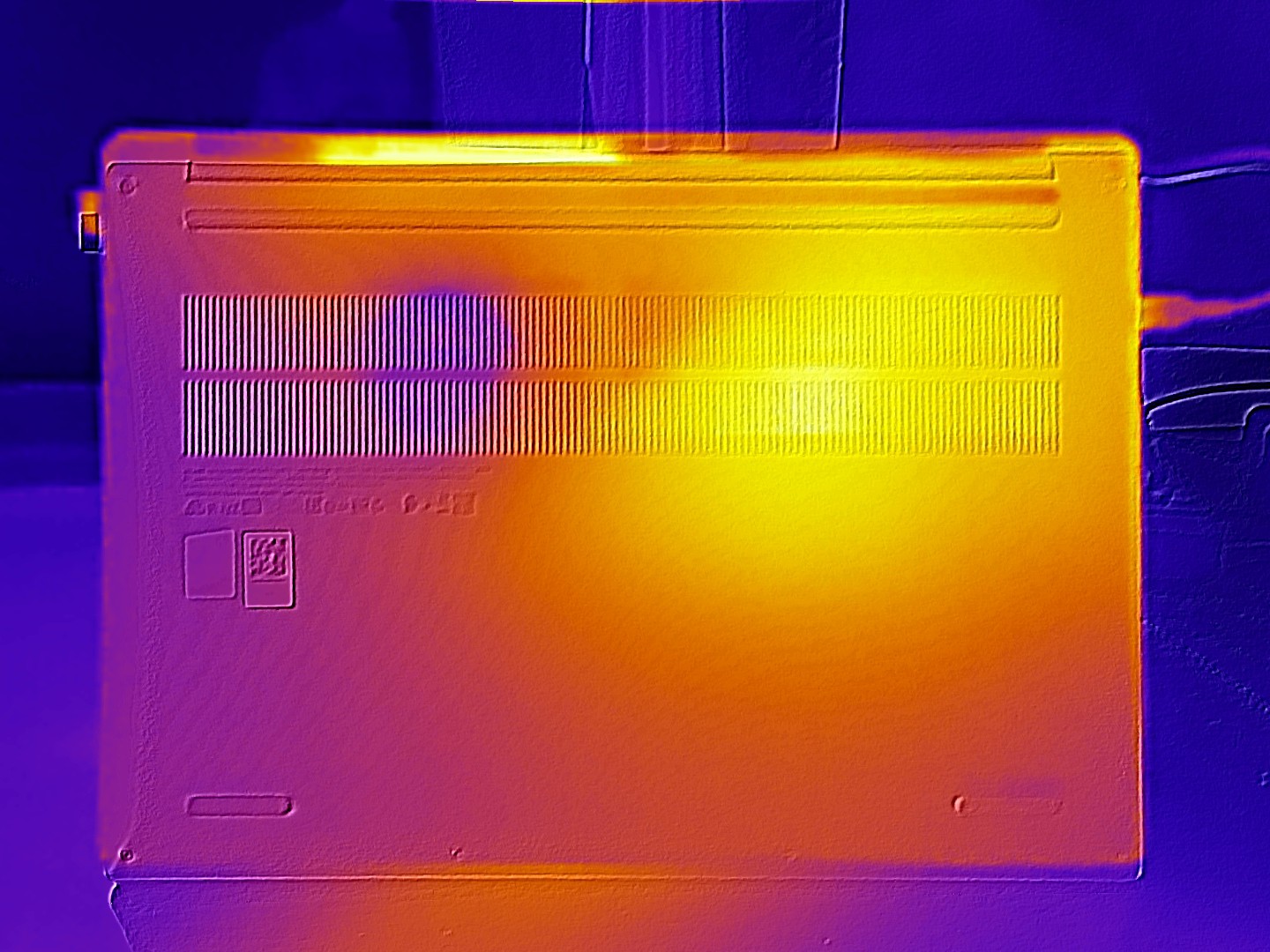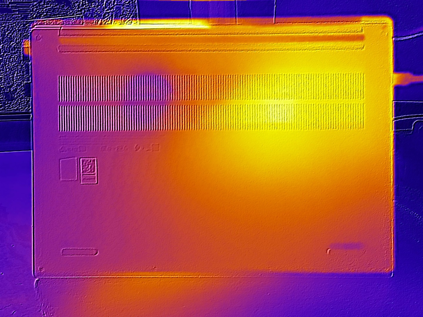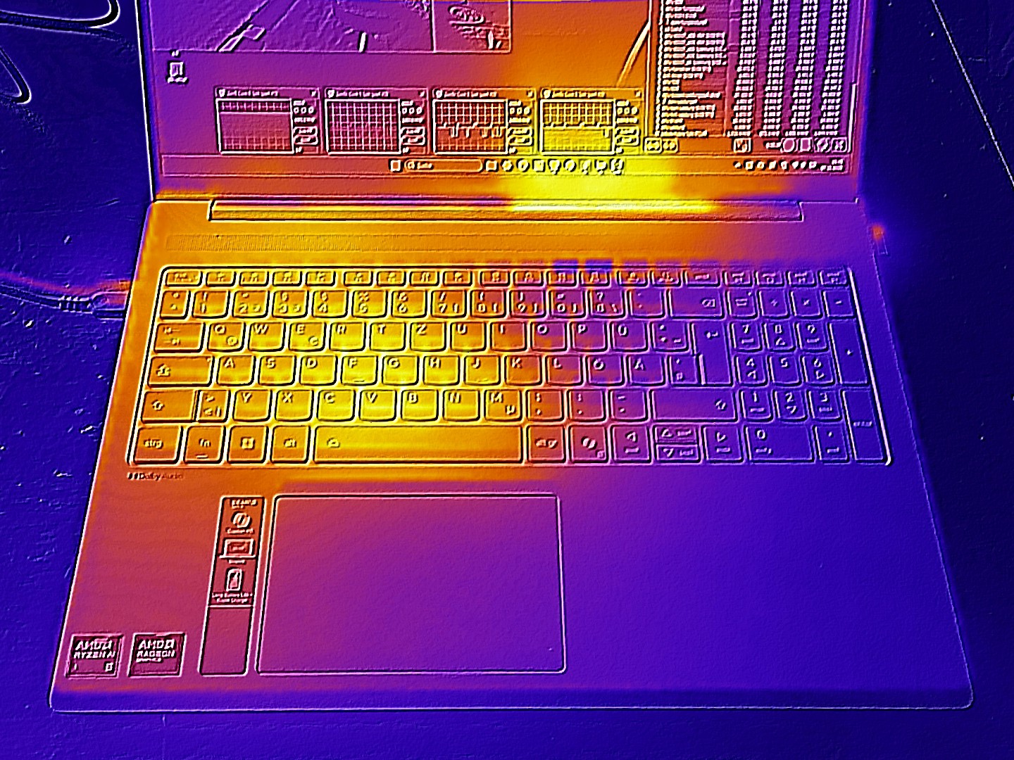 Jeśli chodzi o temperatury, IdeaPad pokazuje się z najlepszej strony. W trybie bezczynności i podczas obciążenia 3D działa zauważalnie chłodniej niż jego wewnętrzni konkurenci, umożliwiając korzystanie z urządzenia na kolanach, jeśli zajdzie taka potrzeba.