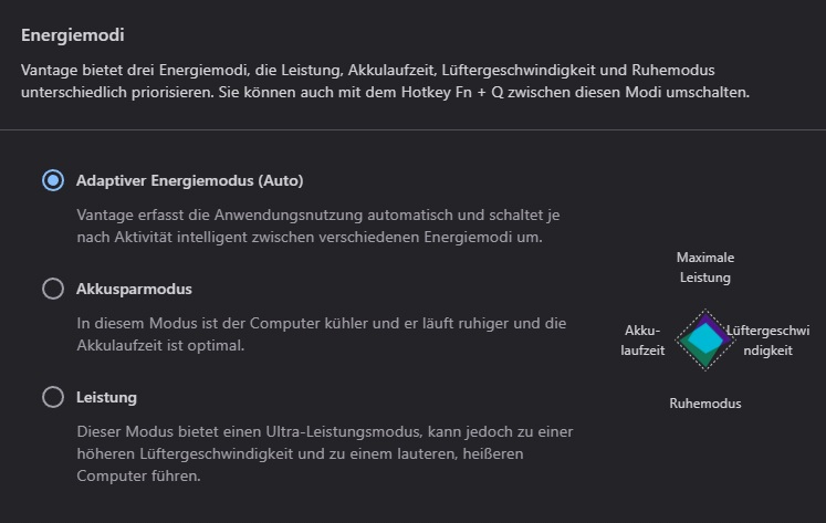 | Tryb | Oszczędzanie baterii | Adaptacyjny (Auto) | Wydajność |