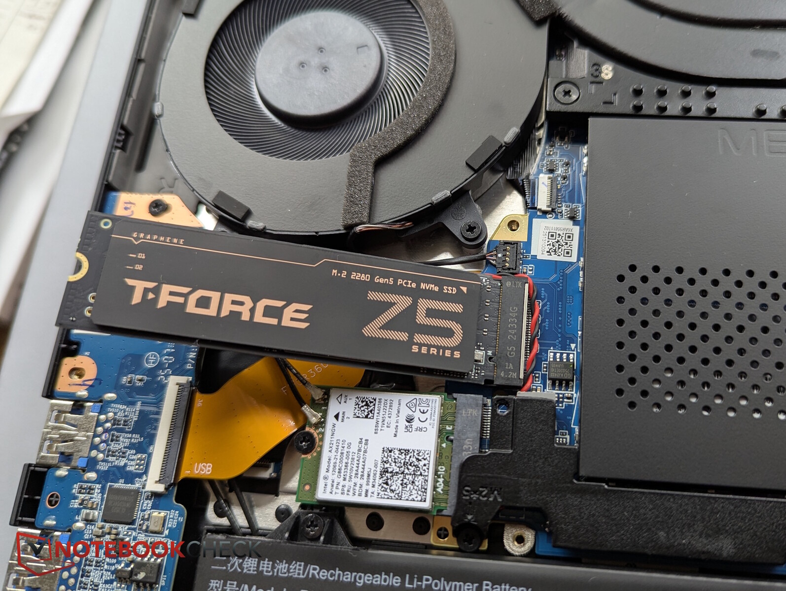 Ponieważ maksymalna wydajność wymaga gniazda M.2 z obsługą PCIe 5.0 x4, wybraliśmy obecny model Schenker XMG Pro 16 do naszego testu. Główny slot SSD laptopa obsługuje nowoczesny standard, podczas gdy drugi slot niestety działa tylko na PCIe 4.0.