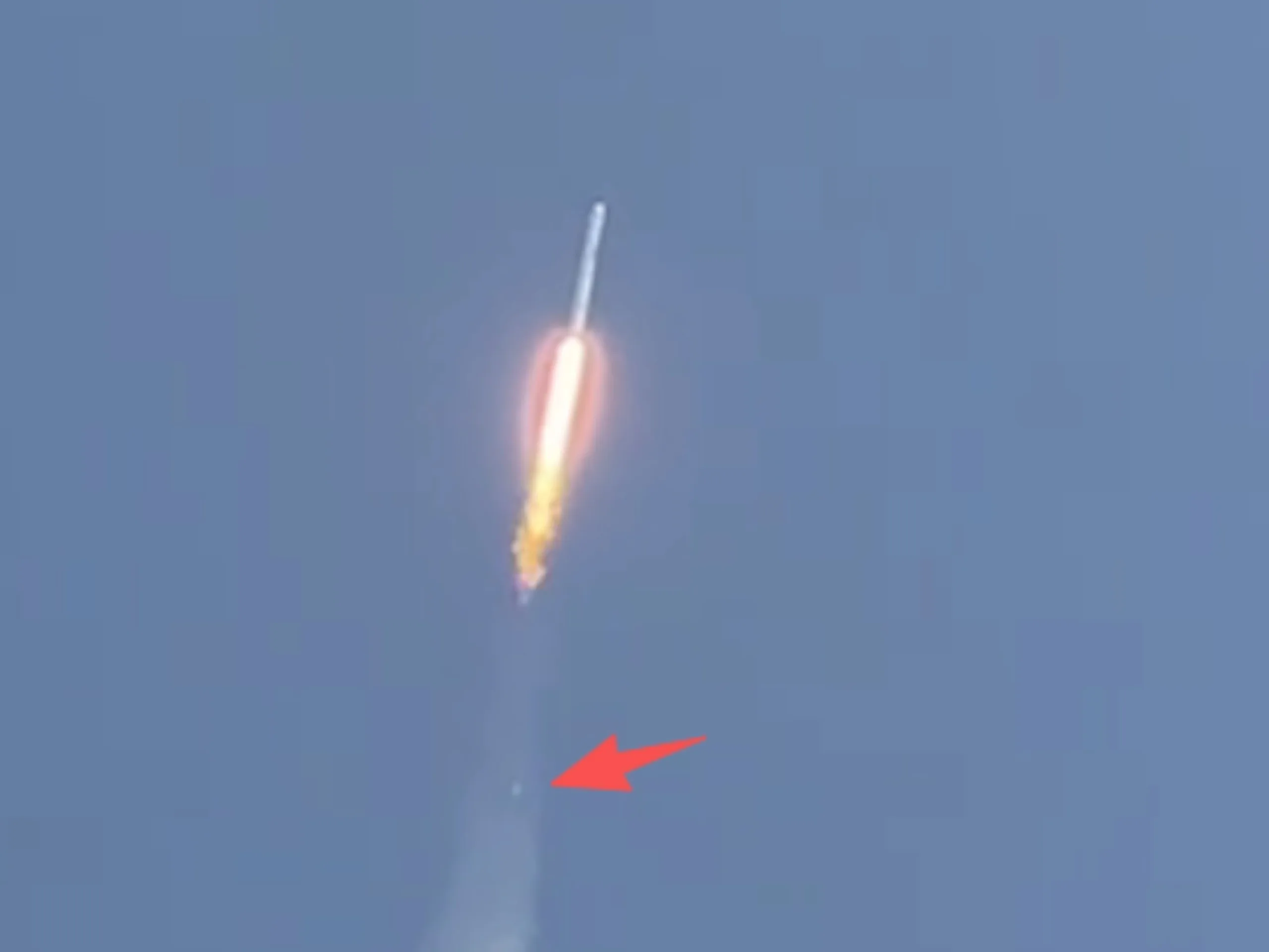 Po około dwóch minutach lotu najwyraźniej wystąpił problem w układzie napędowym. Wstępne zdjęcia sugerują, że mogło dojść do eksplozji w obszarze jednego z silników. Dokładna sekwencja zdarzeń nie została jeszcze oficjalnie potwierdzona, ale obecne doniesienia wskazują, że tor lotu zboczył z zamierzonego kursu albo pod koniec działania pierwszego stopnia, albo podczas przejścia do drugiego stopnia. Ponieważ drugi stopień opiera się tylko na jednym silniku, jest on znacznie mniej odporny na awarie niż pierwszy.