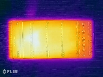 (-) Maksymalna temperatura w górnej części wynosi 55.4 °C / 132 F, w porównaniu do średniej 35.2 °C / 95 F , począwszy od 21.9 do 247 °C dla klasy Smartphone.