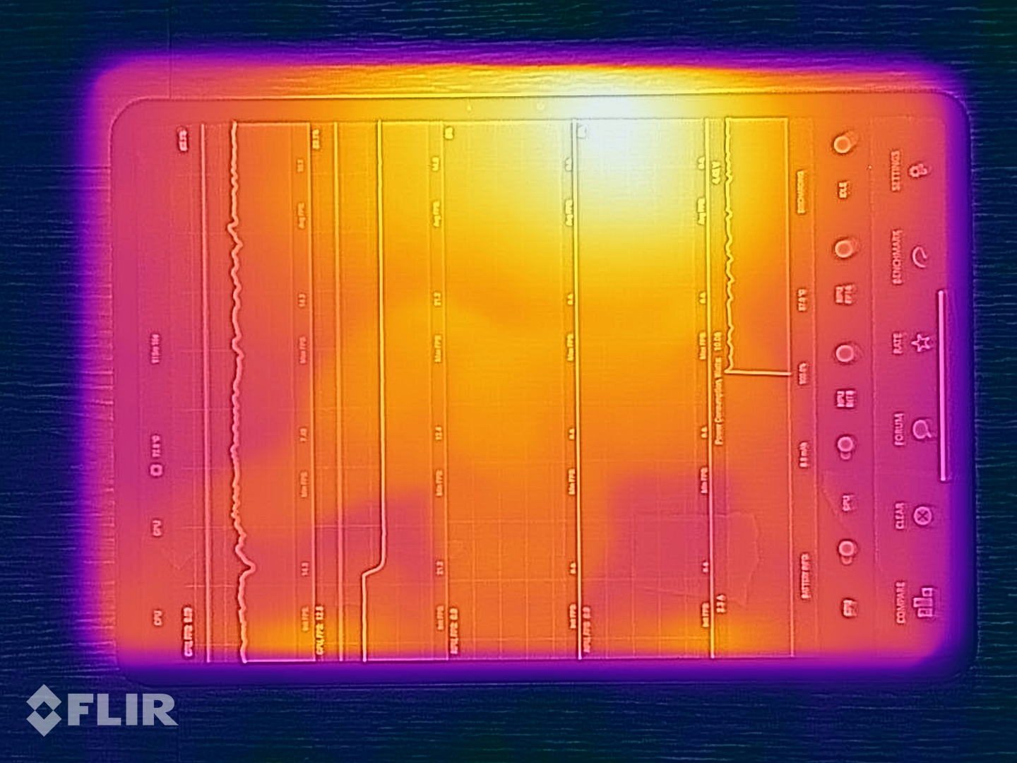 Temperatury powierzchni pozostają bezpieczne w każdym możliwym scenariuszu. Chłodzenie SoC jest również udane i powoduje jedynie stosunkowo niewielki poziom dławienia w teście warunków skrajnych, ale nadal generuje najwięcej klatek w porównaniu.