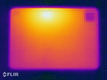 (±) Maksymalna temperatura w górnej części wynosi 40.2 °C / 104 F, w porównaniu do średniej 33.6 °C / 92 F , począwszy od 20.7 do 53.2 °C dla klasy Tablet.