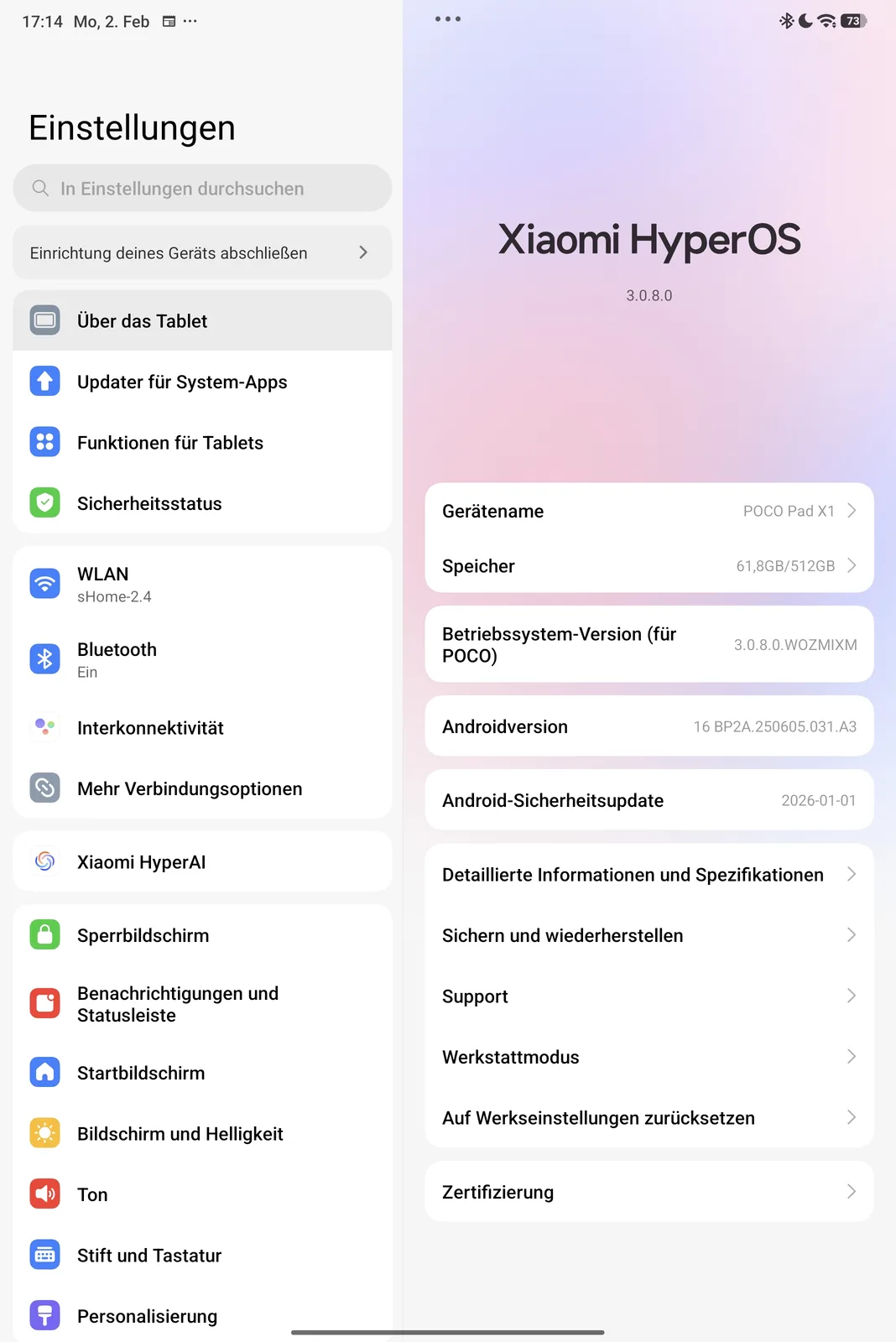 Poco Pad X1 był pierwotnie dostarczany z systemem Google Android 15 i Xiaomi HyperOS 2.0, ale wkrótce po rozpoczęciu naszej recenzji otrzymał aktualizację do obecnego HyperOS 3.0, który jest oparty na Android 16. Tablet Xiaomi ma otrzymywać główne aktualizacje przez trzy lata, a poprawki bezpieczeństwa przez pięć lat. W zestawie znajduje się również HyperAI Xiaomi.