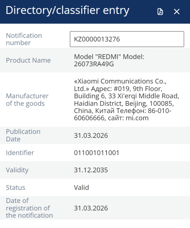 Podejrzewamy więc, że Xiaomi wprowadzi 26073RA49G jeszcze w tym roku. Dodatkowo, numer modelu potwierdza, że jest to urządzenie globalne. Co więcej, numer modelu sugeruje, że Xiaomi wprowadzi urządzenie około lipca 2026 roku w jakiejś formie.
