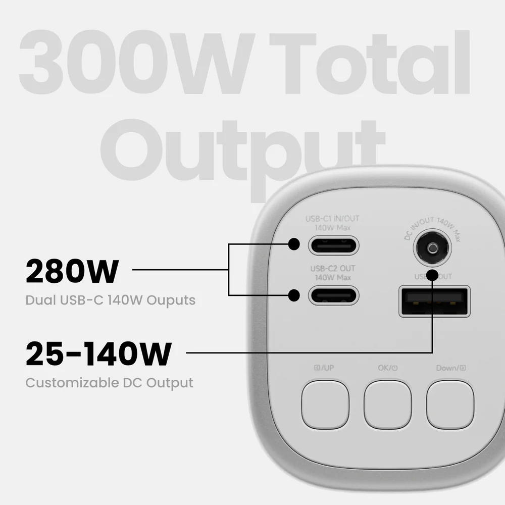 Nowy zasilacz Sharge Shargeek 300 zawdzięcza swoją nazwę zdolności do dostarczania maksymalnej łącznej mocy 300 W z czterech portów. Dostępne są dwa porty USB-C o mocy 140 W, które można wykorzystać do jednoczesnego ładowania dwóch laptopów. Jest też port USB-A i wyjście DC o mocy do 140W. Ponadto obsługuje protokół szybkiego ładowania PD 3.1.