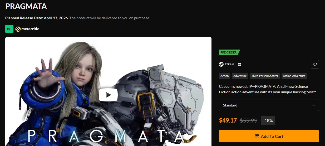 Nowe wydania zwykle nie otrzymują zniżek tak wcześnie. W większości przypadków gracze muszą czekać tygodnie, a nawet miesiące, zanim zobaczą jakiekolwiek obniżki cen. Jednak w tym przypadku jest inaczej. Na Fanatical, Pragmata jest już dostępna z 18% zniżką, co obniżyło jej cenę z 59,99 USD do 49,17 USD.