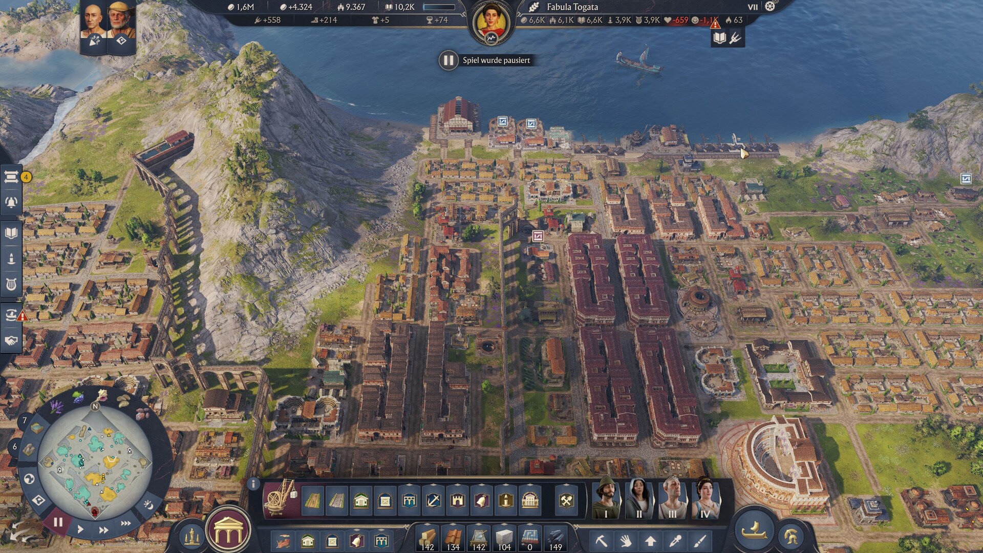 Oznacza to, że Anno 117 staje się nieco grą logiczną i aktywnie zachęca do integracji budynków produkcyjnych z głównym miastem. Tworzy to wizualną różnorodność i zapobiega zbyt jednolitemu wyglądowi osad. Nowa odsłona Anno traci jednak szansę na prawdziwe obszary o mieszanym przeznaczeniu. W starożytnym Rzymie istniały budynki, w których warsztaty i sklepy zajmowały pierwsze piętro. Prawdopodobnie wymagałoby to modułowego systemu budowy, ale sprawiłoby, że miasta byłyby bardziej zróżnicowane wizualnie i otworzyłyby nowe możliwości. Zgodnie z tradycją Anno, gęstość zaludnienia wzrasta z każdym poziomem cywilizacji, więc patrycjusze nie mieszkają już w przestronnych domus, ale w eleganckich wysokich budynkach.