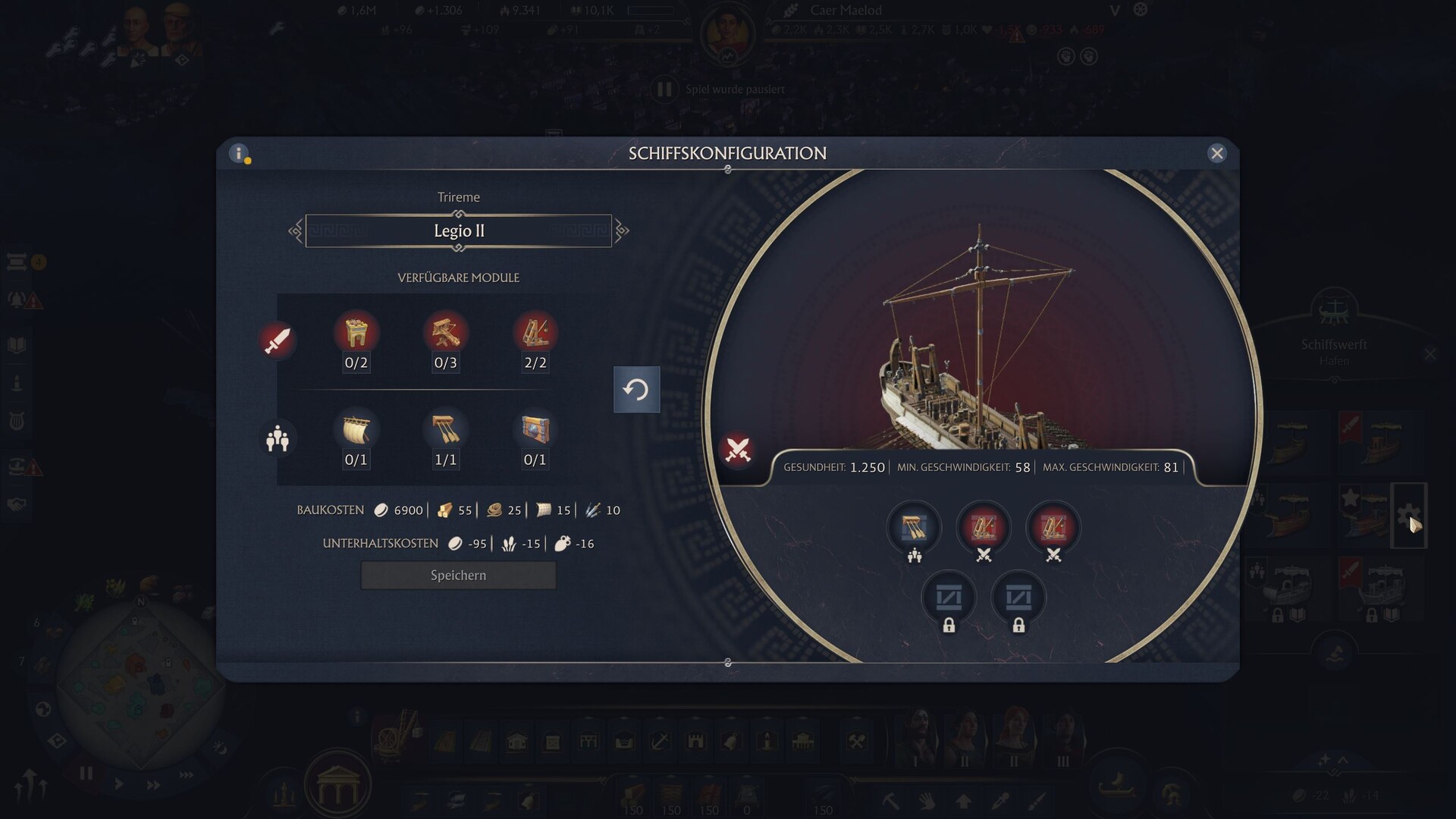 Walka morska korzysta z modułowej konstrukcji statków. W zależności od okrętu, można dołączyć kilka modułów, aby uczynić go bardziej skutecznym na przykład przeciwko budynkom. Podczas naszej recenzji udało nam się wyeliminować jednego ze słabszych piratów i innego pretora SI za pomocą walki lądowej. Jego silniejszy brat pirat w Latium zgodził się na rozejm po kosztownych bitwach, ale ku dezaprobacie cesarza. Nasze działania wpływają nie tylko na stosunki z innymi władcami, ale także na naszą pozycję wobec cesarza, co w najgorszym przypadku może doprowadzić do wojny.