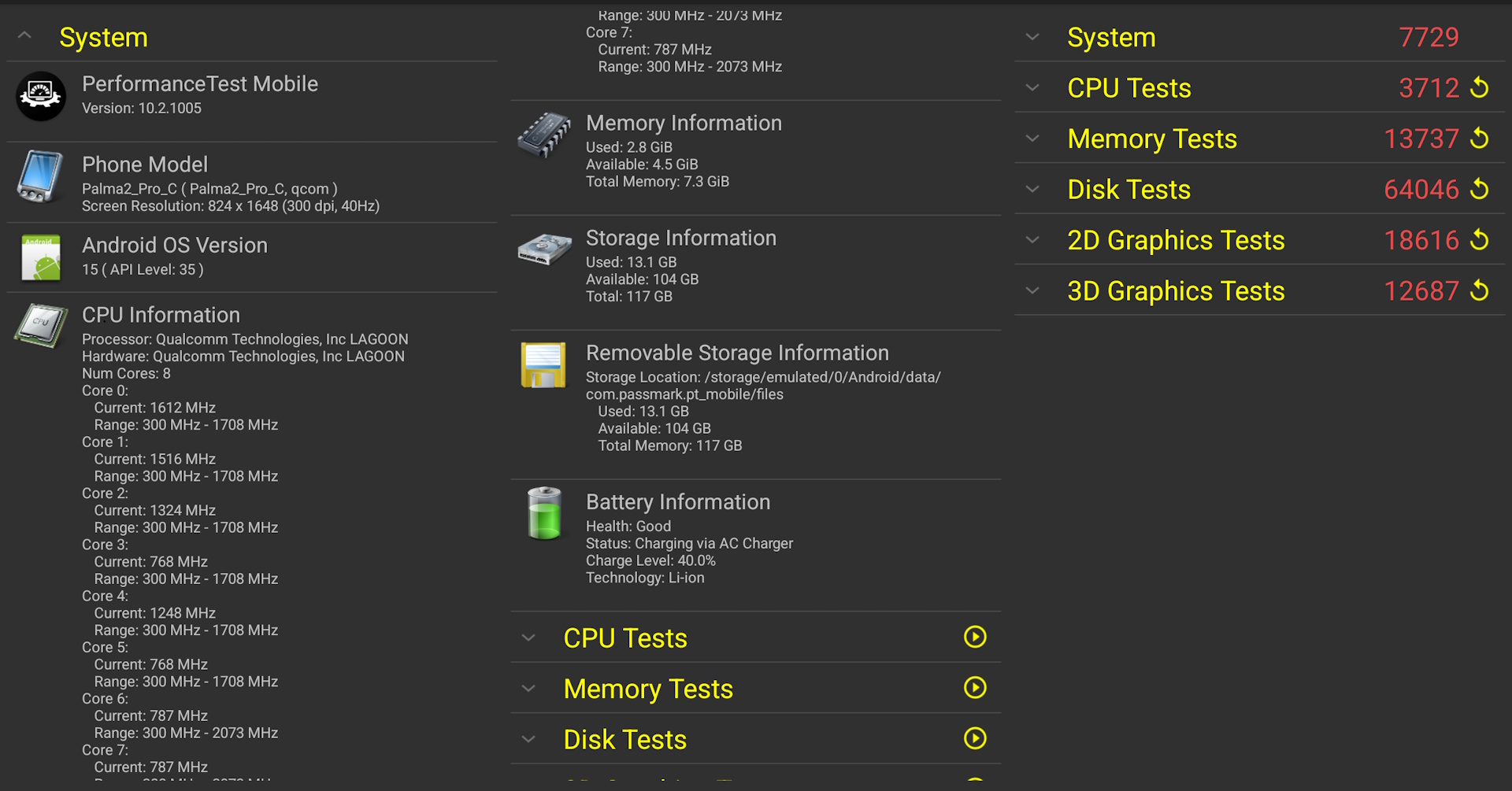 Testy porównawcze PassMark sugerują, że wydajność jest porównywalna z Samsungiem S10 lub A52.