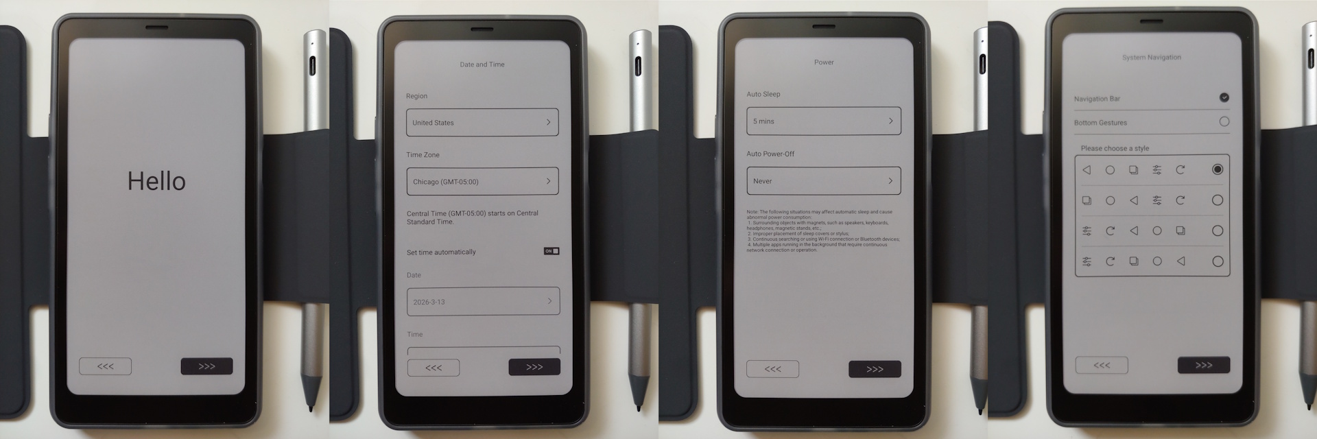 System jest pozbawiony bałaganu i zawiera tylko aplikacje do podstawowych czynności, takich jak czytanie e-booków i robienie notatek, choć niektóre z nich są ograniczone - na przykład słownik pomija słowa takie jak "naysay"