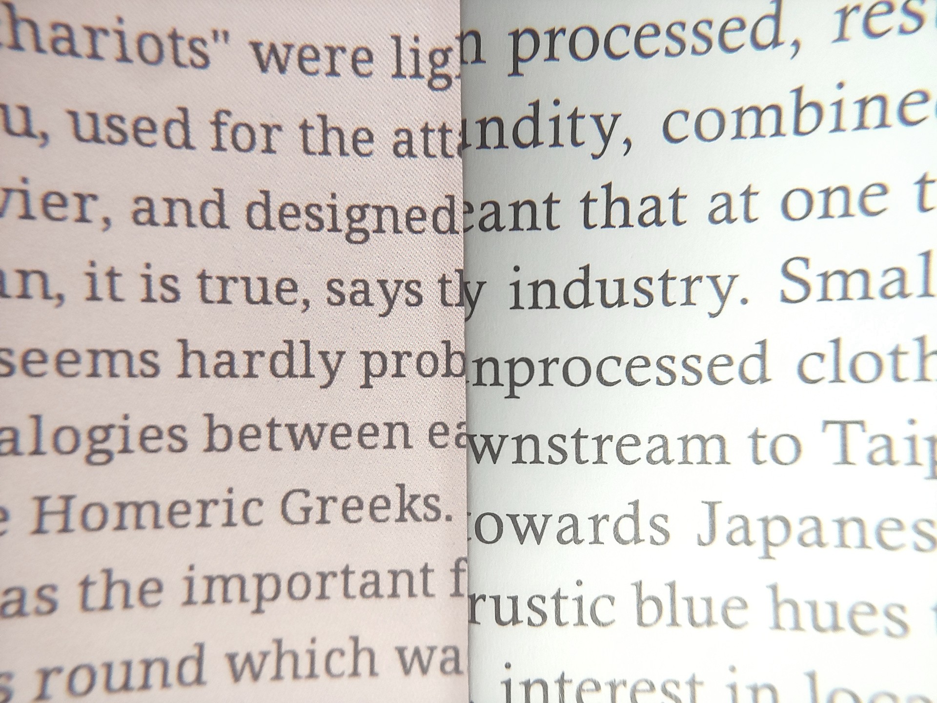 Piksele były widoczne przy 8-krotnym powiększeniu. Wyświetlacz OLED miał nieco czystsze krawędzie tekstu, choć żaden z nich nie pasował do druku w czasopiśmie, a krawędzie stawały się bardziej szorstkie po przełączeniu z trybu Regal na Speed.