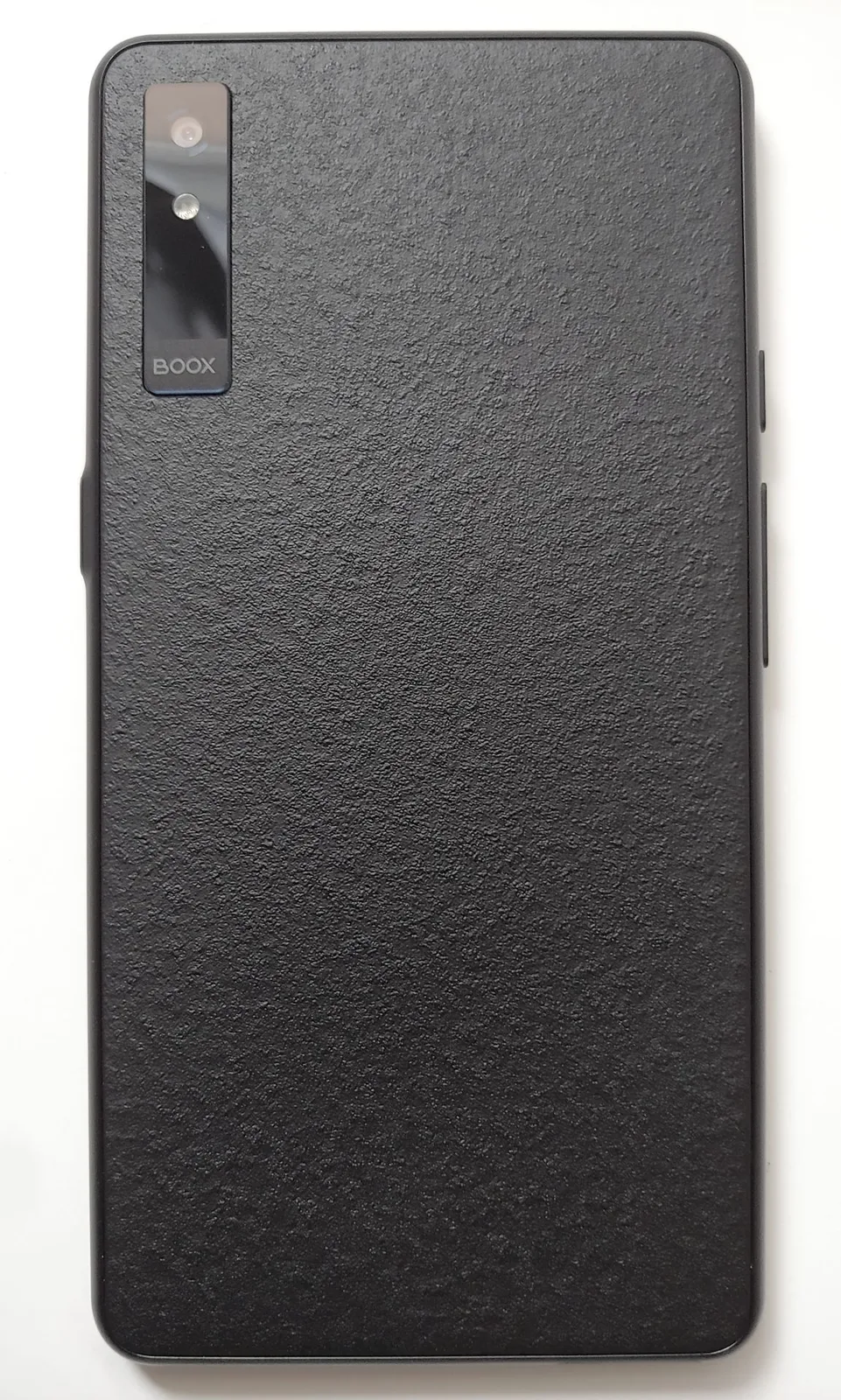 Boox przypomina smartfon, z matowym ekranem dotykowym E Ink Kaleido 3 ekran dotykowy zapewniający czytanie bez odblasków, podwójne mikrofony i głośniki stereo. Fizyczne elementy sterujące obejmują przycisk zasilania na prawej krawędzi oraz przyciski inteligentne i głośności po lewej stronie. Aparat 16 MP z lampą błyskową znajduje się z tyłu.