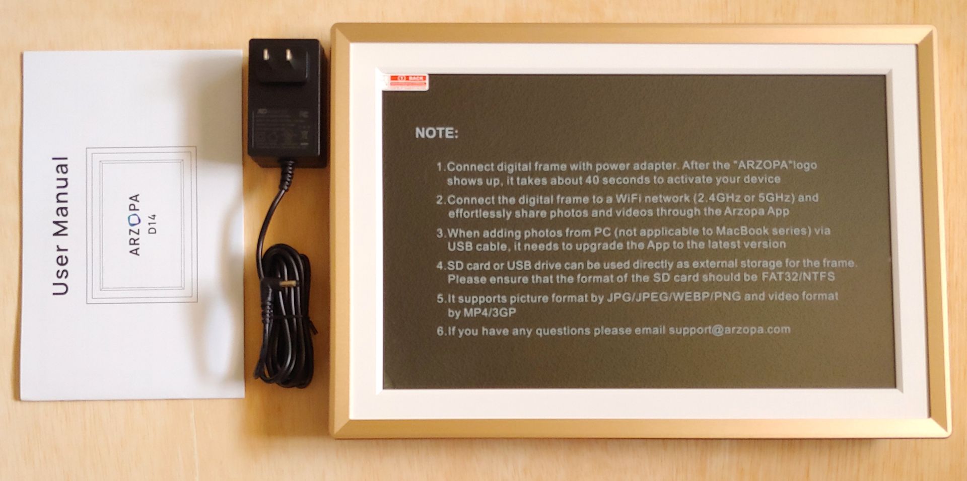 Arzopa została zapakowana z zasilaczem sieciowym i instrukcją obsługi.