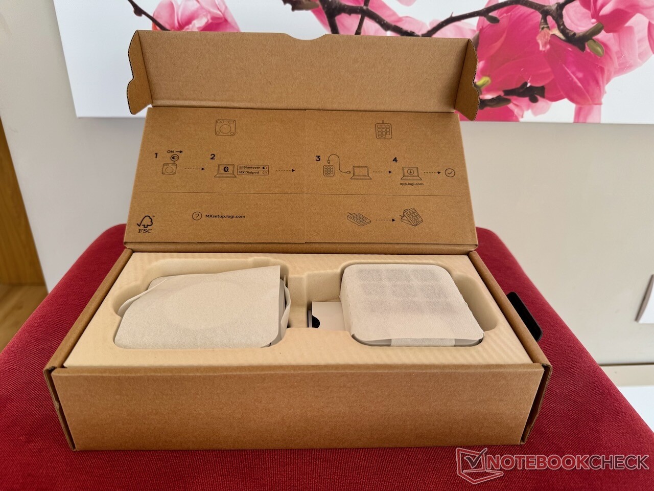 Zakres dostawy konsoli Logitech MX Creative Console obejmuje klawiaturę numeryczną wraz z dwiema bateriami AAA, klawiaturę z kablem USB-C, stojak na klawiaturę i zwykłą małą papierową broszurę z informacjami dotyczącymi bezpieczeństwa. Trzymiesięczną subskrypcję Adobe Creative Cloud można aktywować za pomocą linku na papierowej karcie, która wymaga Logi ID i konta Adobe.