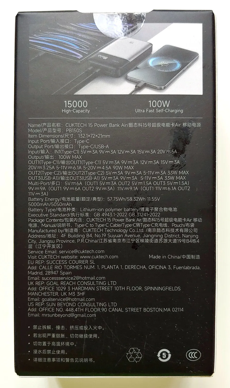 Cuktech 15 Air szybko ładuje urządzenia elektroniczne i inne banki energii bez żadnych problemów i z taką samą prędkością, jak w przypadku ładowania z zasilaczy sieciowych OEM. Większość urządzeń z bateriami litowo-jonowymi ładuje się w szybszym tempie od 0% do 80-90%, a następnie wolniej do 100% dla bezpieczeństwa, niezależnie od tego, czy korzystają z zasilacza Cuktech czy OEM.