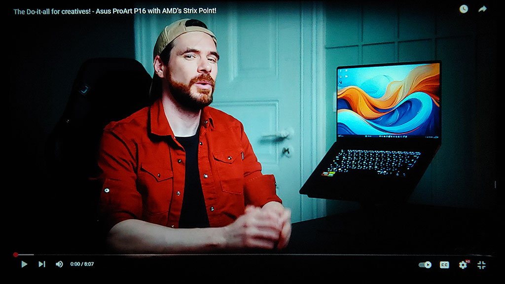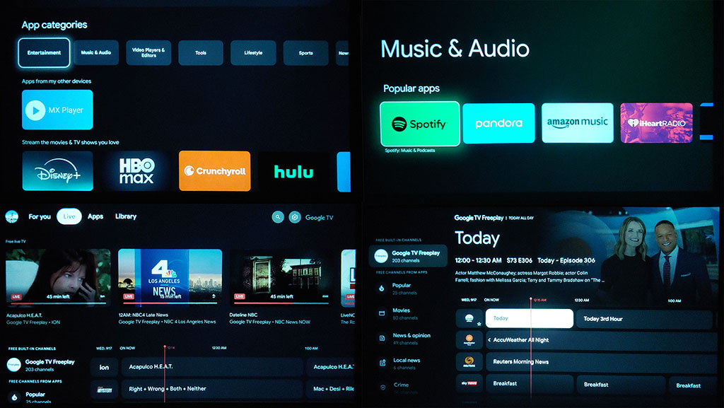 Media społecznościowe i zdjęcia ze smartfonów 16 MP wyświetlały się pomyślnie, ale zdjęcia ze smartfonów Xiaomi 200 MP były rozpikselowane. Aplikacja nie obsługuje napisów, alternatywnych ścieżek dźwiękowych ani powiększania obrazu, ale inne odtwarzacze multimedialne są dostępne w sklepie Google TV.