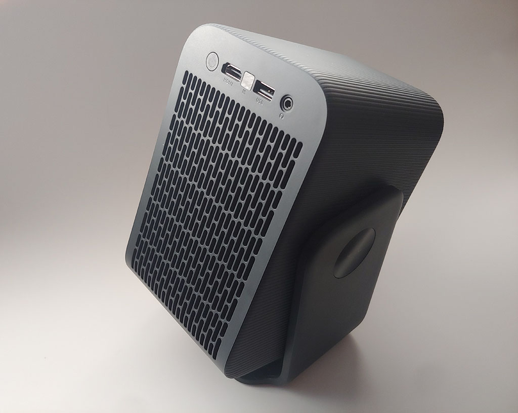 Projektor ma wielkość płyty CD, dzięki czemu idealnie nadaje się do oglądania popularnych usług streamingowych i bezpłatnych kanałów telewizyjnych w pomieszczeniach, w których przestrzeń jest na wagę złota. W ramach kompromisów projektor nie może być używany w bardzo jasnych miejscach i wymaga ręcznego pobrania aplikacji do tworzenia kopii lustrzanych smartfonów.