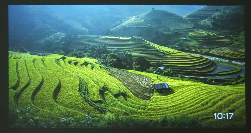 Projekcja wygląda podobnie do projekcji kinowej (nie-laserowej, nie-IMAX, nie-Dolby Cinema). Kolory nie będą przesycone, ale filmowe w ich nieco stonowanym odwzorowaniu. Na przykład bujne zielone pola nigdy nie będą tak żywe, jak na telewizorach OLED.