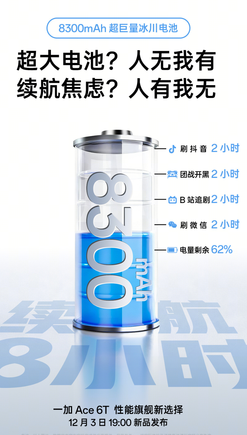 Teraz firma potwierdziła, że Ace 6T będzie wyposażony w największą baterię spośród wszystkich smartfonów, które do tej pory wypuściła. Podsumowując, model Ace 6 zdobył tę koronę w zeszłym miesiącu z pojemnością 7,800 mAh dla 500 mAh uderzenia nad OnePlus 15. W nowej serii teaserów OnePlus ujawnił, że Ace 6T będzie miał tę samą przewagę nad Ace 6 dzięki baterii o pojemności 8300 mAh, która obsługuje ładowanie przewodowe 100 W.