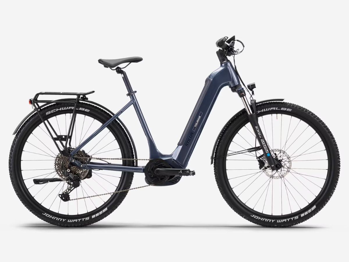 Kolejną zmianą w nowym rowerze elektrycznym Stilus E-Touring jest 11-biegowy napęd Shimano Cues w miejsce 10-biegowego systemu Microshift Advent X Trail Trigger Pro. Hamulce również pochodzą od Shimano, hydrauliczne hamulce tarczowe MT200, a opony Schwalbe to teraz Schwalbe Johnny Watts 29 x 2,35 cala. Półsztywny e-rower ma ten sam widelec amortyzowany Suntour XCM32 ATB o skoku 100 mm, co jego poprzednik. Montowany na kierownicy ekran sterowania Bosch Kiox 3900 jest wyposażony w funkcję eBike Lock, a inne akcesoria obejmują błotniki, oświetlenie i podpórkę.