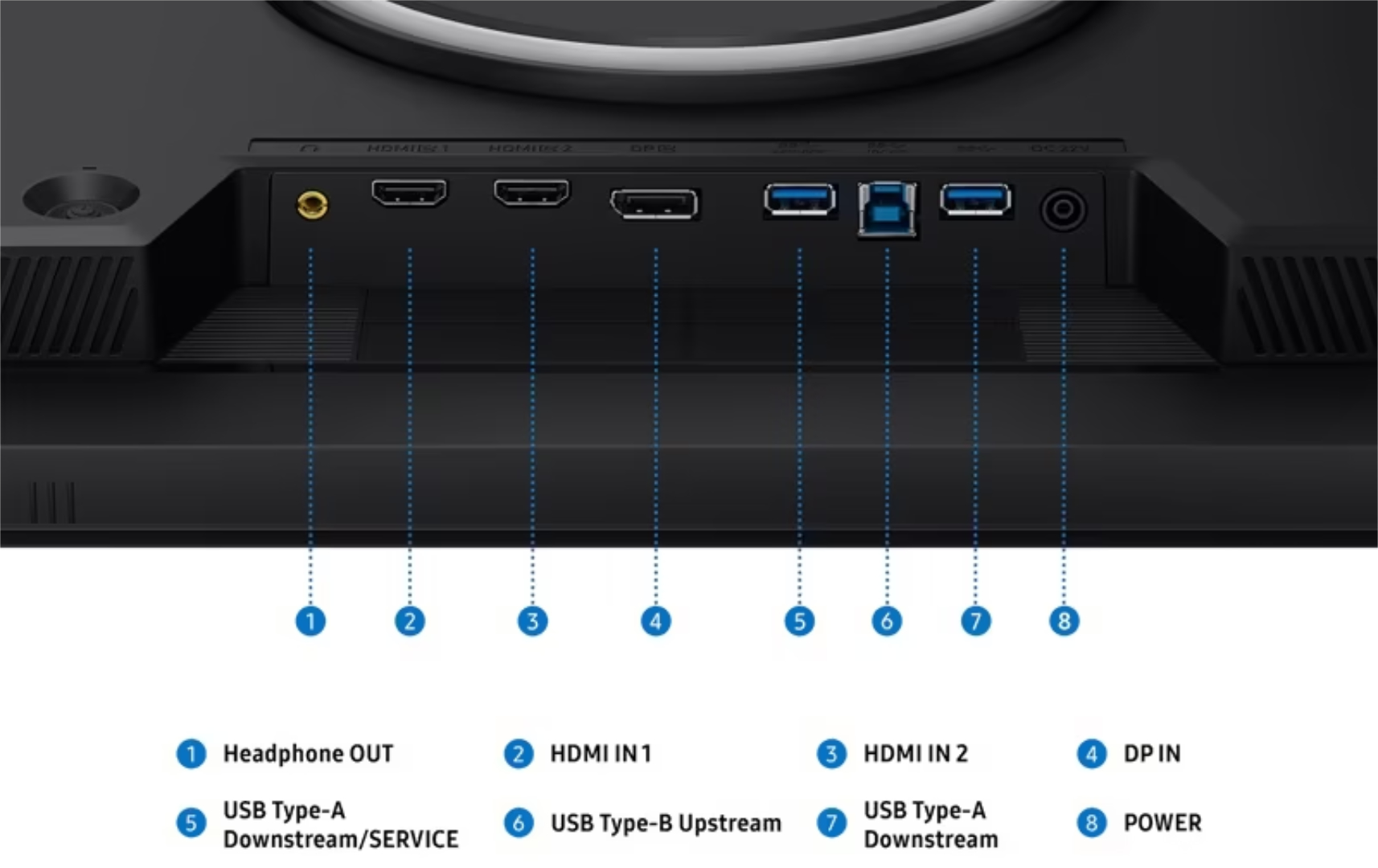 Co więcej, G80HF osiąga maksymalną jasność 350 nitów, ale brakuje mu stref lokalnego przyciemniania Mini LED, aby przekroczyć tę wartość podczas oglądania treści HDR. Samsung wyposażył monitor również w dwa porty HDMI 2.1, do których dołącza jedno złącze DisplayPort 2.1 (UHBR20). G80HF posiada również porty USB 3.2 typu A i USB typu B, ale nie ma łączności USB typu C, o której można by mówić.