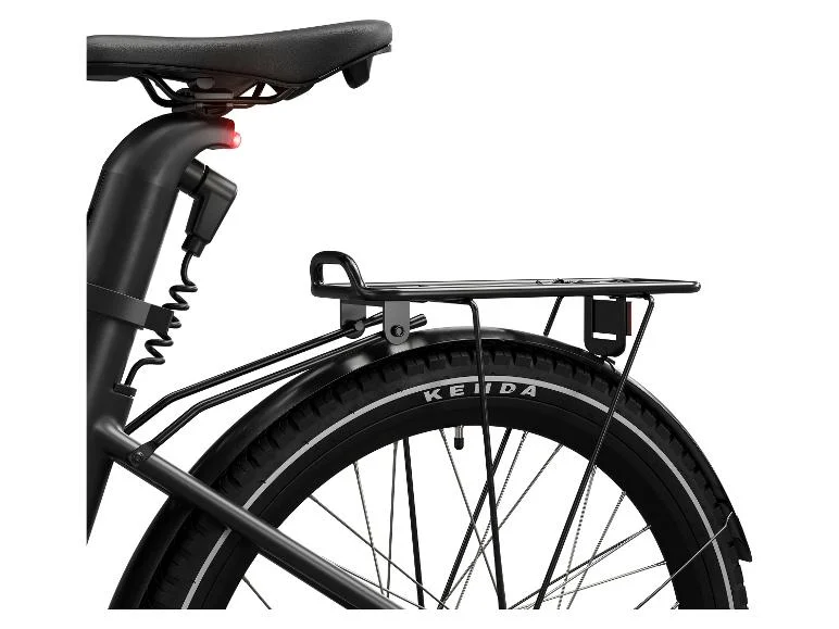 Inne funkcje 7-biegowego modelu obejmują tylną przerzutkę Shimano Tourney, amortyzowany widelec, hamulce tarczowe Tektro i opony Kenda. Ponadto dostępne są akcesoria, takie jak tylny bagażnik, reflektor, tylne światło i dedykowane miejsce na inteligentny tracker, taki jak Apple Air Tag(obecnie 24 USD w Amazon). Rower typu step-through ma aluminiową ramę, a jego całkowita waga wynosi około 24 kg.