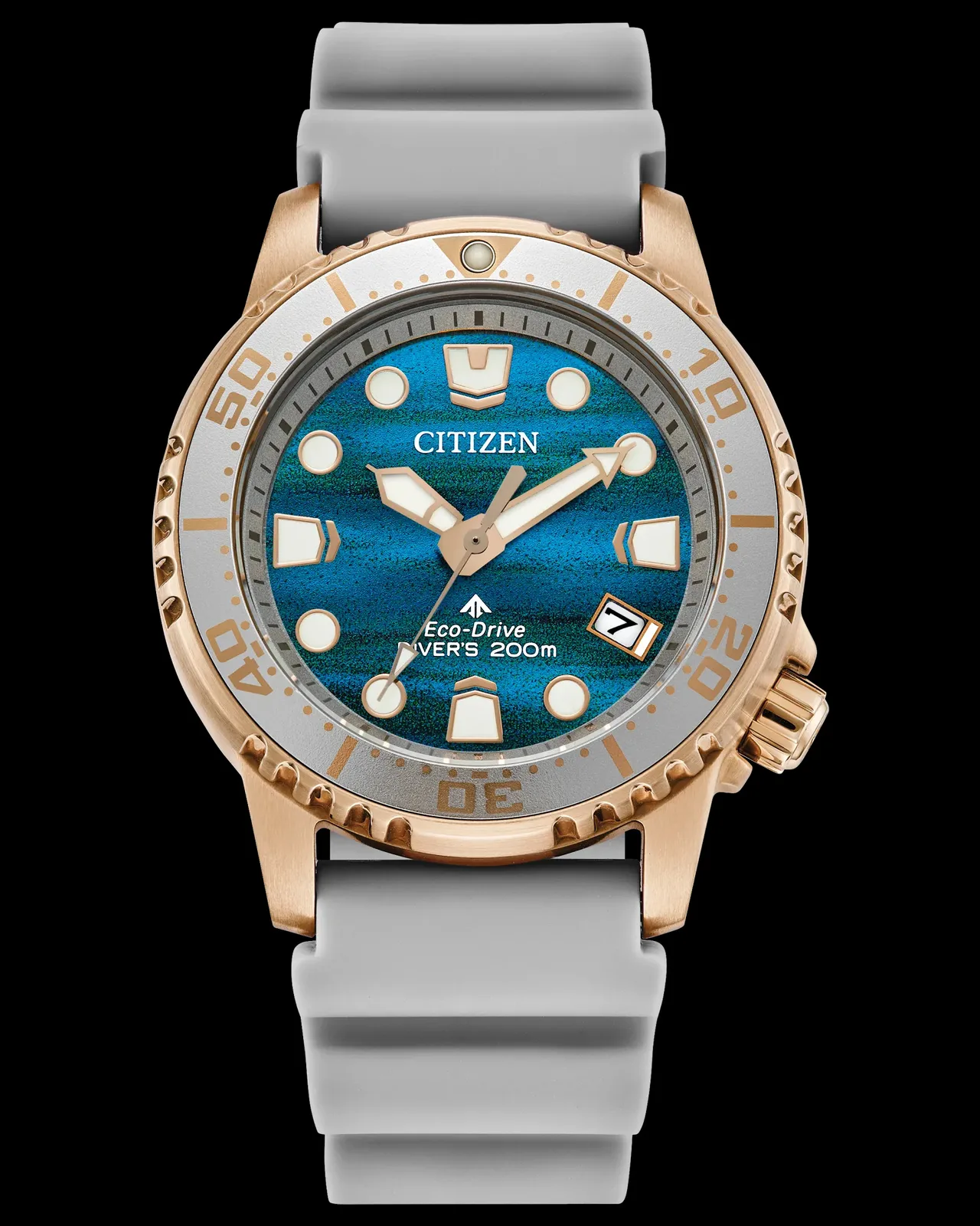 Citizen opisuje nową, żywą tarczę jako wykończenie "strukturalnym atramentem" z poziomymi paskami, które tworzą zmieniającą się niebieską powierzchnię, która w pewnym oświetleniu zmienia kolor na lekko fioletowy. Efekt ten jest widoczny w obu modelach, podczas gdy reszta układu pozostaje spójna z istniejącymi projektami Promaster diver.