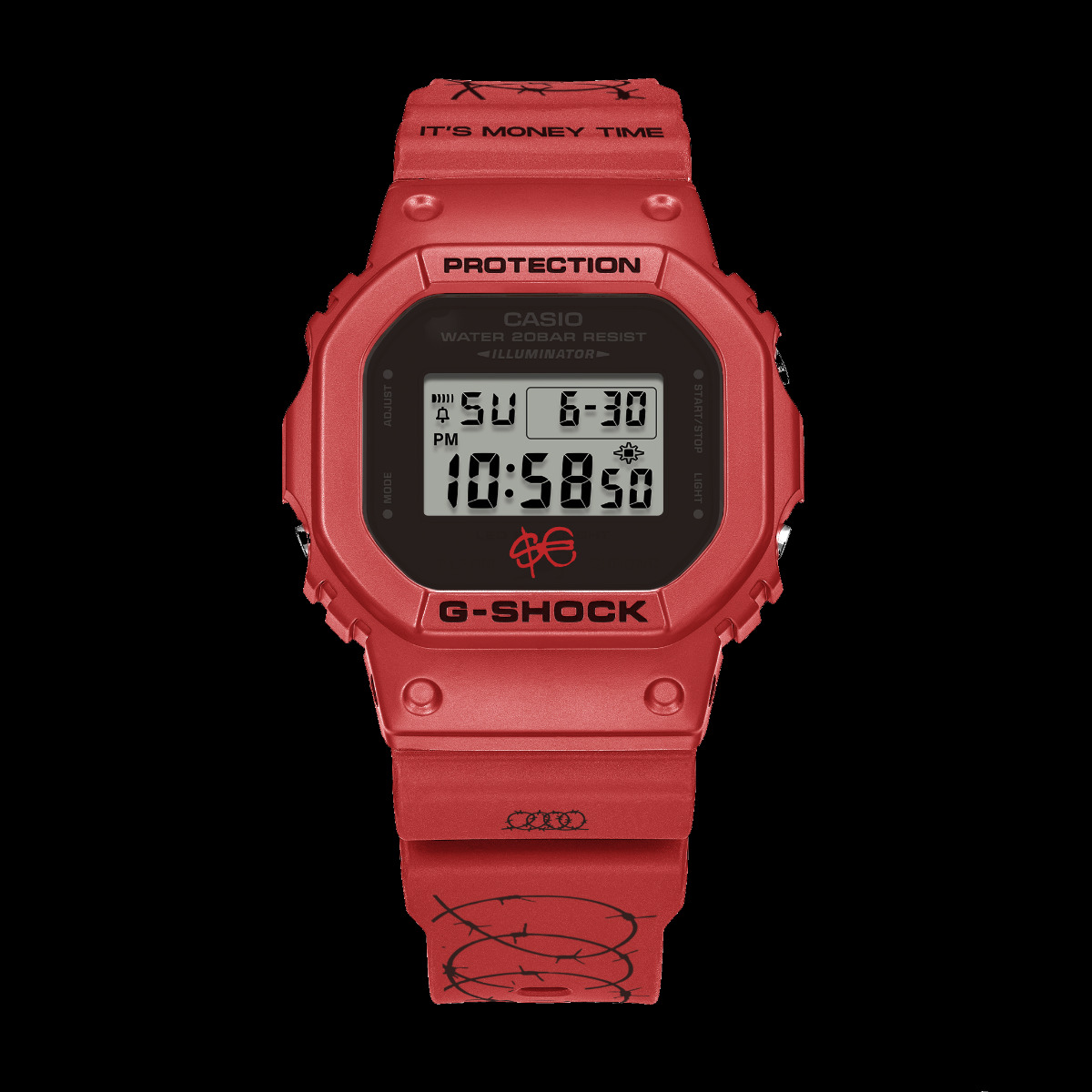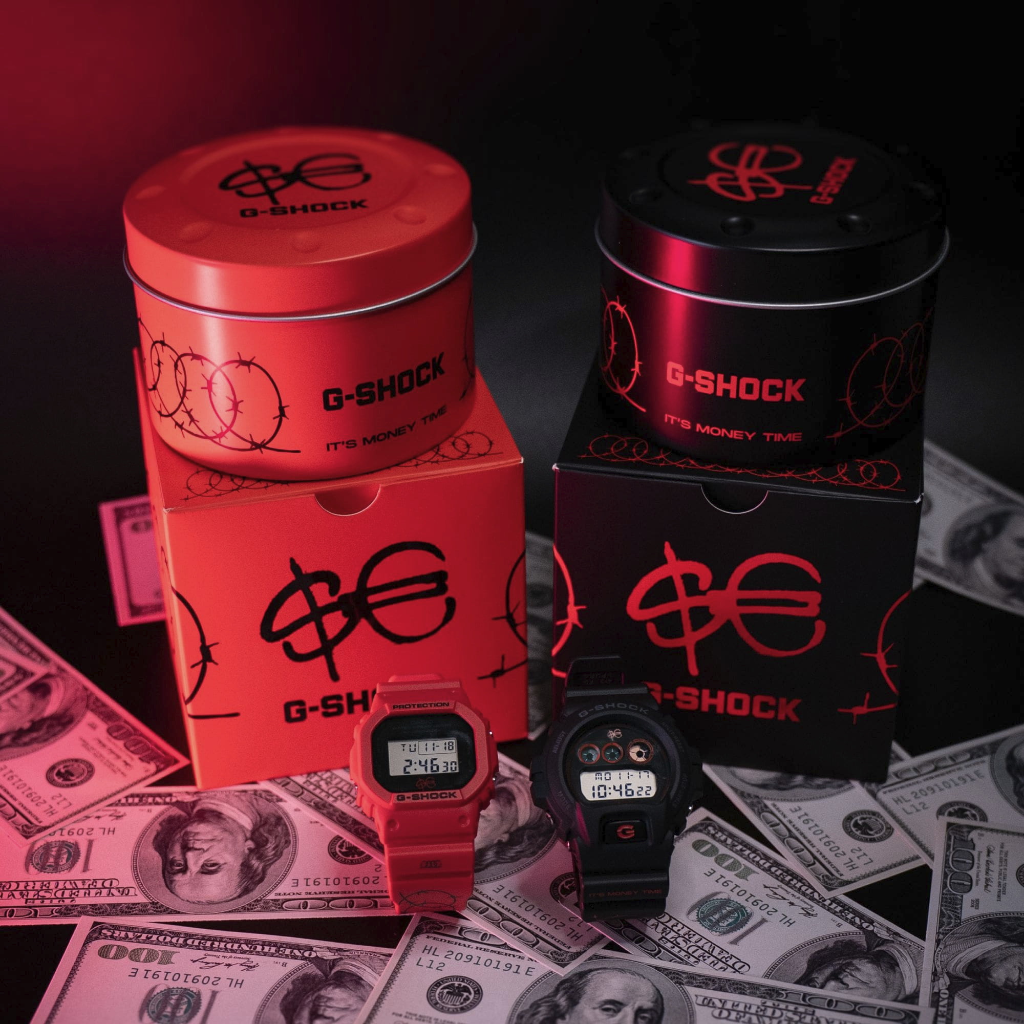 Zegarki noszą wizualne znaki Sfera w całym projekcie. Na pasku znajduje się grafika drutu kolczastego stworzona przez artystę, podczas gdy fraza "It's Money Time" biegnie wzdłuż paska. Jego logo jest wygrawerowane na deklu i pojawia się na tarczy po włączeniu czerwonego podświetlenia LED. Oba modele wykorzystują czarno-czerwony układ kolorów, przy czym 6900 ma matową czarną kopertę z czerwonymi akcentami, a 5600 jest wykończony w całości w jaskrawoczerwonym kolorze.