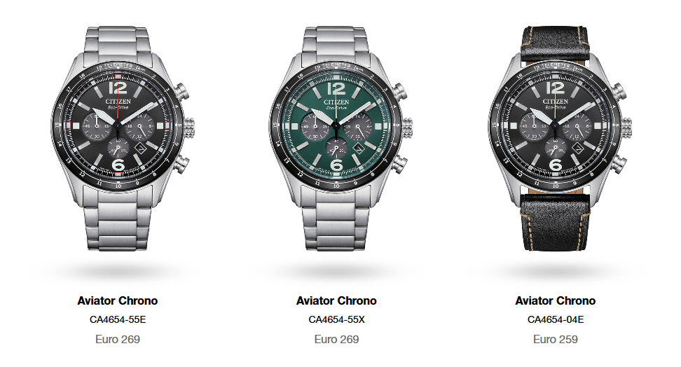 W Europie zegarek Citizen OF Collection CA4654-04E aviator kosztuje 259 euro, a zegarki CA4654-55E i CA4654-55X z metalowym paskiem są nieco droższe i kosztują 269 euro. Są one dostępne u autoryzowanych dealerów Citizen na całym rynku.