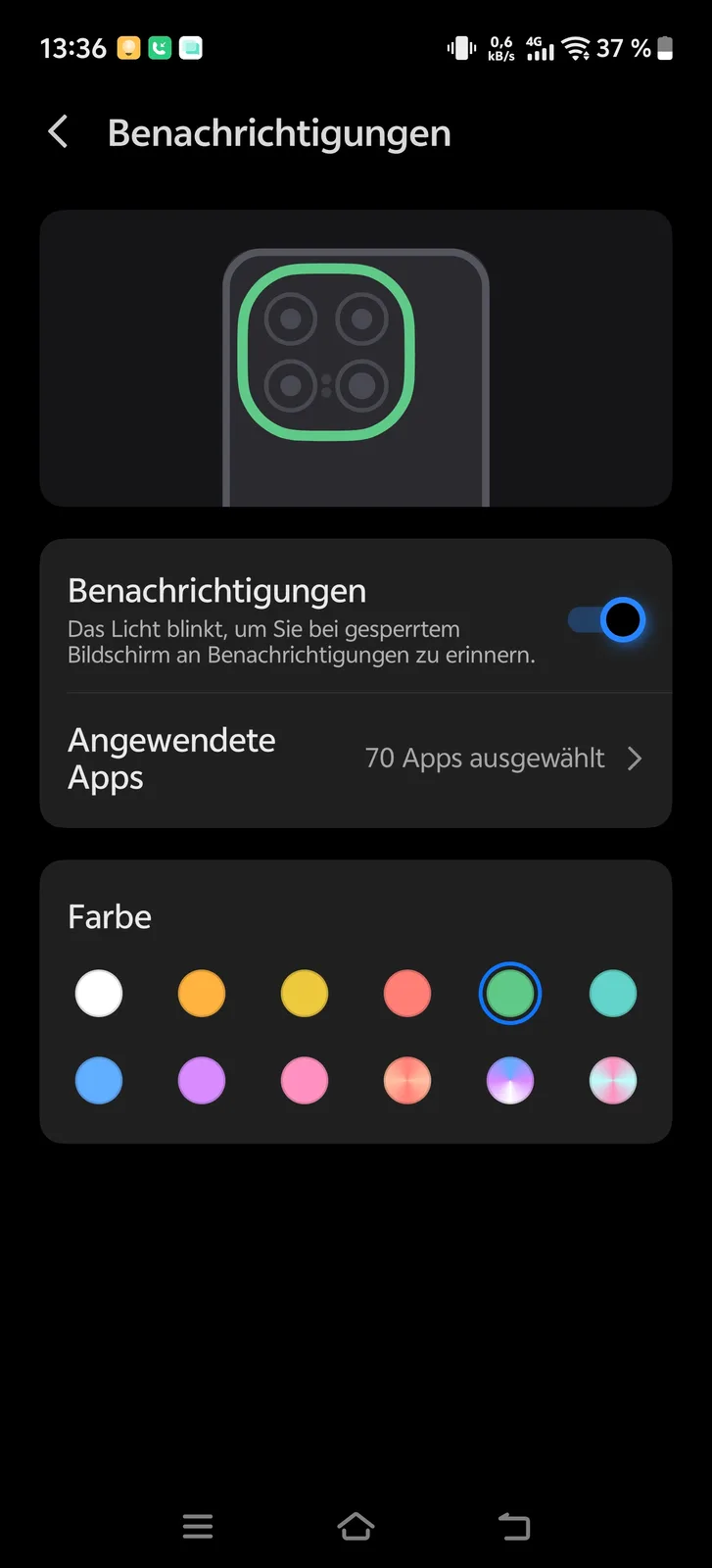 Oprócz koloru, można również dostosować sposób świecenia pierścienia LED. Halo Dynamic Light służy jako wizualny wskaźnik powiadomień, połączeń lub wydarzeń w grach. Użytkownicy mogą dostosować funkcje oświetlenia w menu ustawień.