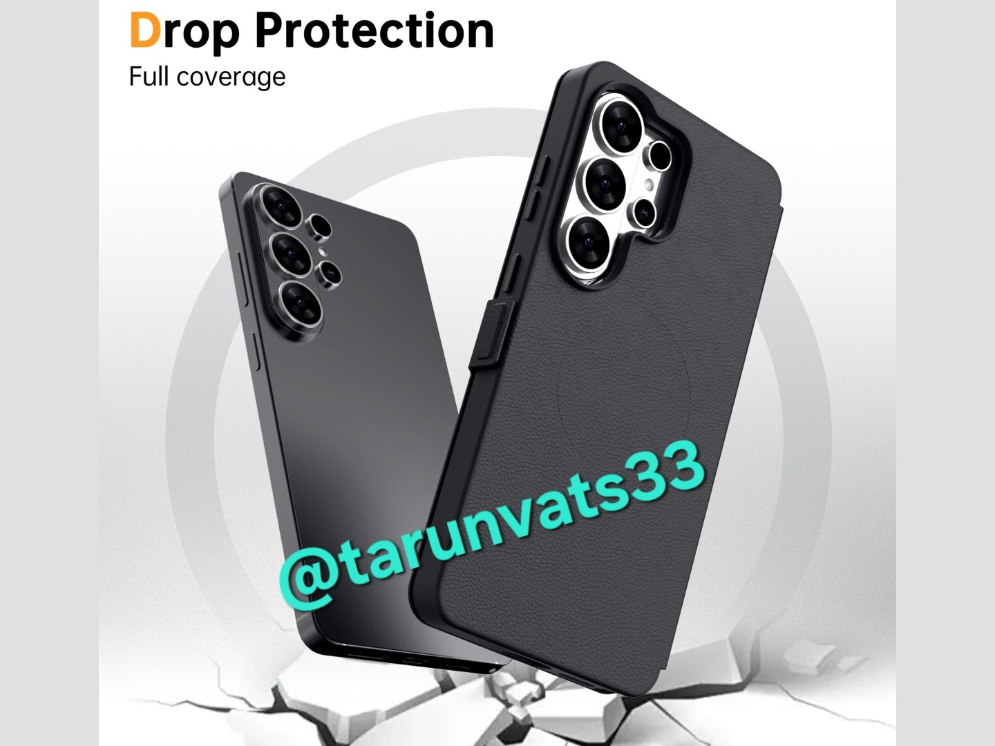 Obraz pochodzi dzięki uprzejmości Tarun Vats na X i pokazuje Galaxy S26 Ultra z i bez etui w stylu książki. Ten bez jest czarnym wariantem, który ma wyspę kamery dla trzech głównych kamer z tyłu i czwartą kamerę poza wyspą, po prawej stronie. Nad tym czwartym aparatem znajduje się lampa błyskowa i dodatkowy czujnik. Przyciski zasilania i głośności znajdują się po prawej stronie. Należy zauważyć, że obraz jest prawdopodobnie oparty na wyciekających renderach i na telefonie nie ma brandingu ani logo firmy.