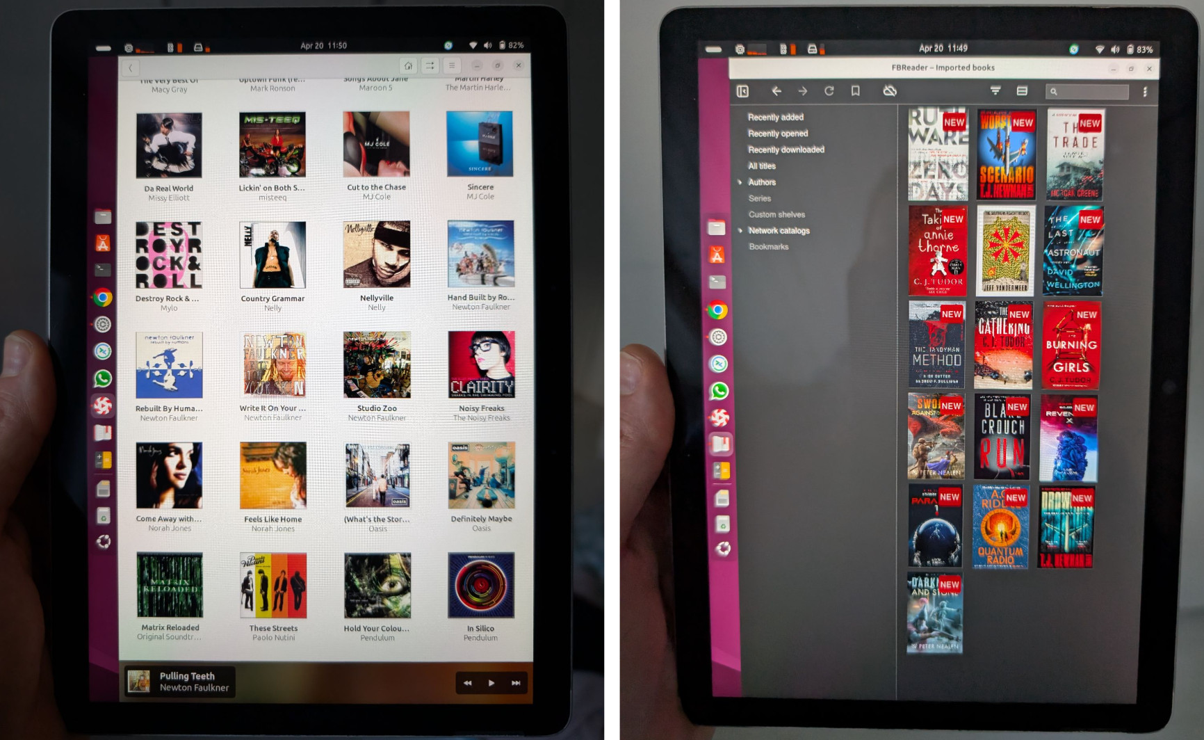 FBReader pozwala na czytanie praktycznie każdego e-booka, w tym ePub i mobi, przy czym urządzenie jest wystarczająco lekkie, aby nie powodować urazów związanych z powtarzającym się napięciem podczas trzymania go przed twarzą przez długi czas. Chociaż FBReader nie jest otwartym oprogramowaniem od 2015 roku, jest to jeden z najlepszych przyjaznych dla dotyku czytników ebooków dla systemu Linux.