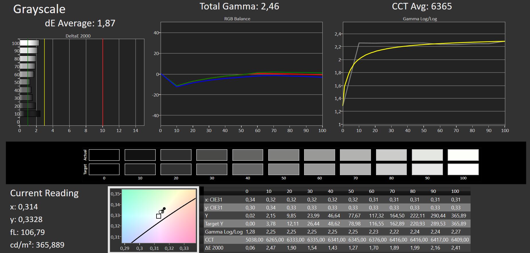 ΔE Greyscale Calman: 1.87 | ∀{0.09-98 Ø5}