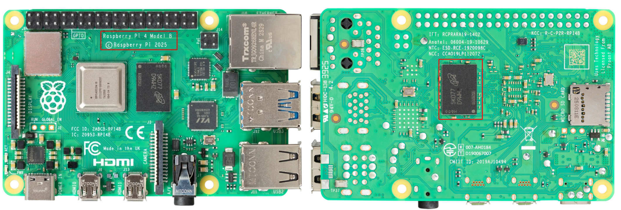 Na początku tego roku, Raspberry Pi potwierdziło że ponownie wprowadzi na rynek Raspberry Pi 4 Model B (obecnie 72,99 USD na Amazon) w nowej wersji. Określana jako płytka "Rev 1.5", nowa Raspberry Pi 4 Model B odróżniała się od istniejących wariantów drugim chipem pamięci RAM na spodzie. Innym identyfikatorem jest nadruk ekranowy "Raspberry Pi 2025" na górnej części SBC.