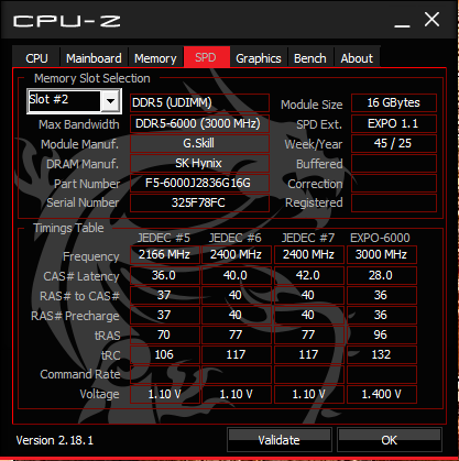 - 2x 16 GB pamięci RAM G.Skill Trident Z5 Neo RGB DDR5-6000 działającej w profilu EXPO-6000 z timingami 28-36-36-96 przy 1,40 V