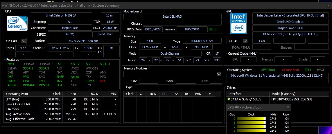 Na stronie Intel Celeron N5095 to jedyna opcja procesora dostępna dla Ace Magician T8Pro. Cztery natywne rdzenie mają do dyspozycji 8 GB pamięci RAM DDR4 i oferują solidną wydajność do podstawowych zadań biurowych.