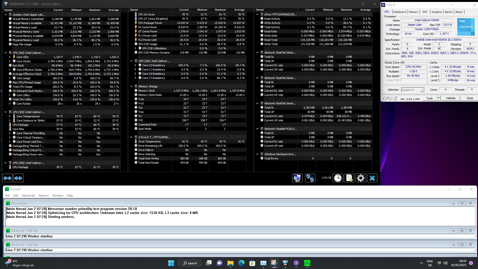 | Przeciętny Intel Celeron N5095 (2858 - 2929, n=3) | |