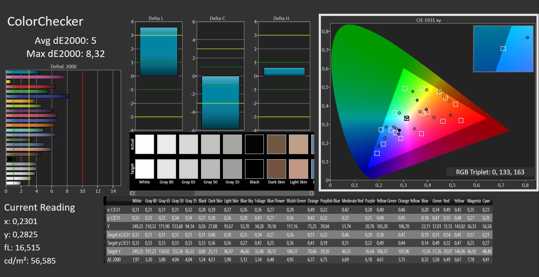 ΔE ColorChecker Calman: 5 | ∀{0.5-29.43 Ø4.78}