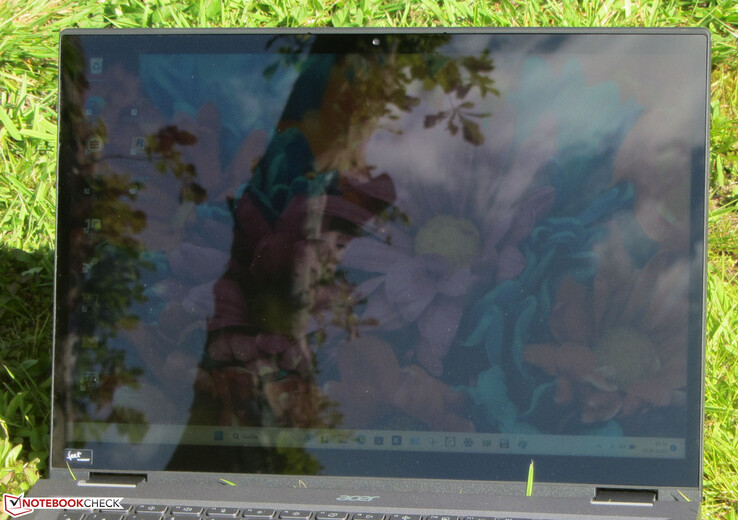Dotykowy wyświetlacz urządzenia (1920 x 1200 pikseli, 14 cali, IPS), który ma format 16:10, nieco utrudnia przenoszenie laptopa: Ze względu na odblaskową powierzchnię i słabe oświetlenie (235 nitów; bateria: < 200 nitów), Spin 14 powinien być naprawdę używany tylko w pomieszczeniach. Jego kontrast i pokrycie przestrzeni kolorów były równie imponujące.