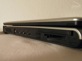 Większość gniazd (co sprzyja praworęcznym użytkownikom) mieści się na lewym boku urządzenia. Jedynie dwa gniazda audio (wejście i wyjście) znajdują się z przodu. Jest to rozwiązanie praktyczne przy korzystaniu ze słuchawek, ale może przyprawić o ból głowy, jeśli zdecydujemy się podłączyć zewnętrzne głośniki. Cieszyć może fakt, że model ten posiada 4 porty USB (3 na prawej ściance, jeden z tyłu).