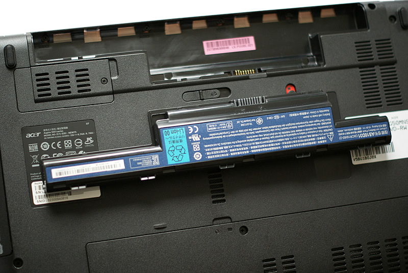 Standardowy dla laptopa marki Acer z ekranem 15,6” akumulator o pojemności 48 Wh (4400 mAh) nie pozwala robić sobie nadziei na długie czasy pracy. Brakuje opcji przełączania grafiki na zintegrowaną obecnej w modelach 5820TG i 5745G.