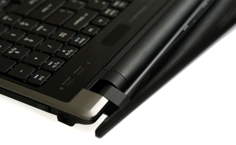 Belka z przyciskami nie jest idealna, ale działa zadowalająco dobrze. Przyciski mają głośny klik, ale nie są tak toporne jak w niektórych innych notebookach Acera, np. 5740G.