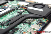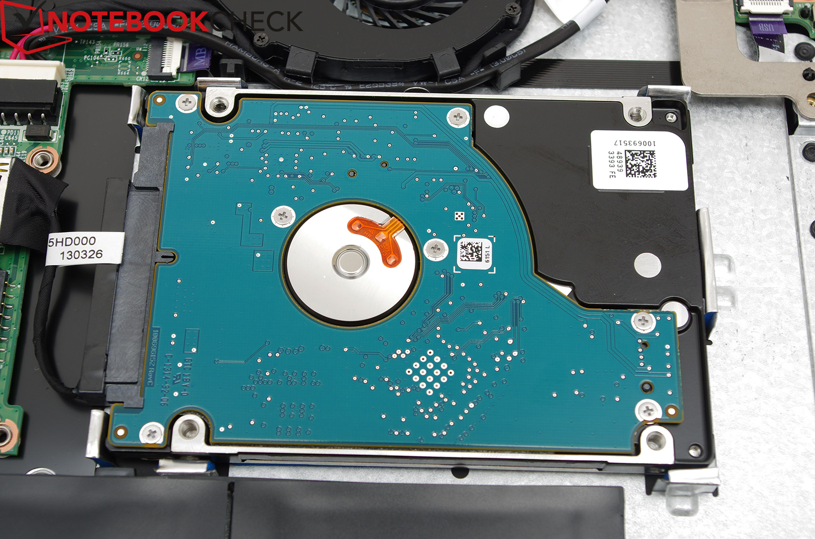 W celu dostania się do podzespołów wewnętrznych trzeba zdjąć całą spodnią osłonę. Trzyma się ona na 17 małych śrubkach. Podwójny układ chłodzenia można odkurzać bez rozbierania laptopa, gdyż wentylatory znajdują się blisko krawędzi obudowy. Istotną informacją jest to, że omawiany laptop posiadał wolne miejsce na miniaturowy dysk SSD (pod mSATA).