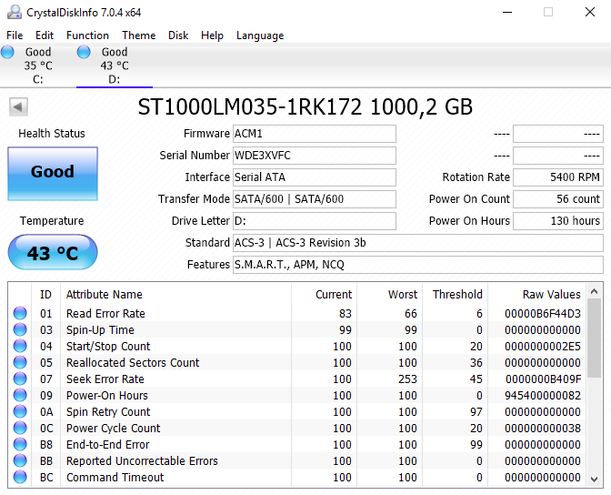 Testowany egzemplarz był wyposażony w dwa dyski, SSD oraz HDD, przy czym system operacyjny był zainstalowany na dysku SSD. Wspomniany SSD to SK Hynix SC308 o pojemności 256 GB, dysk formatu M.2 2280 wykorzystujący interfejs SATA 3. W testach aplikacji AS SSD odczyt sekwencyjny osiągnął 502 MB/s a zapis - 253 MB/s. Dysk ten można wymienić na SSD pod PCIe. Dysk twardy firmy Seagate (o prędkości 5400 obr/min i pojemności 1 TB) uzyskał w teście HD Tune średni odczyt o prędkości 106 MB/s.