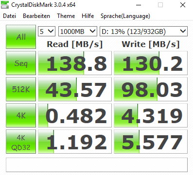 | Read Seq (MB/s) | 493.1 | 475.7 -4% | 521 6% | 517 5% | 520 5% | 495 0% |