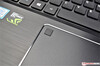 Płytka dotykowa omawianego laptopa została wzbogacona o czytnik linii papilarnych. Znalazł się on w lewym górnym narożniku płytki. Tego obszaru nie można używać do sterowania kursorem. Wymiary płytki to 10,7 x 7,9 cm. Jest więc dość miejsca na nawigowanie. Dolna część płytki zastępuje fizyczne przyciski gładzika. Naciskanie płytki w tym miejscu powoduje cichy klik. Skok zintegrowanych przycisków jest krótki a opór stawiany przez płytkę przy naciskaniu jest wystarczająco duży, by zapobiec przypadkowym kliknięciom. Gładka powierzchnia płytki ma dobre właściwości ślizgowe.