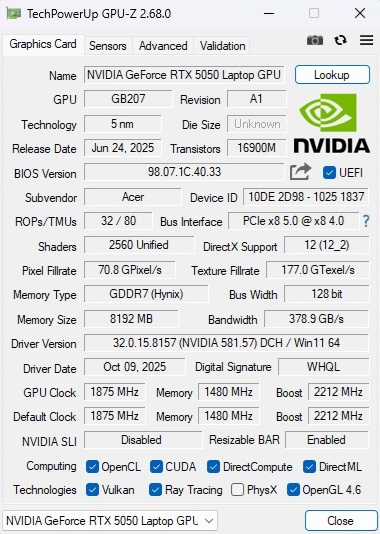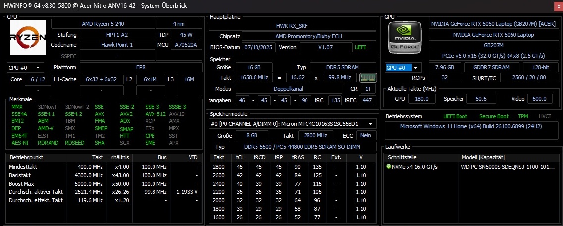 Za około 1100 euro (989 USD) kupujący otrzymują nie tylko dwukanałowe 16 GB pamięci RAM DDR5 i dysk SSD o pojemności 1 TB, ale także procesor AMD Ryzen 5 240 i laptop Nvidia GeForce RTX 5050 z 8 GB pamięci GDDR7 VRAM.