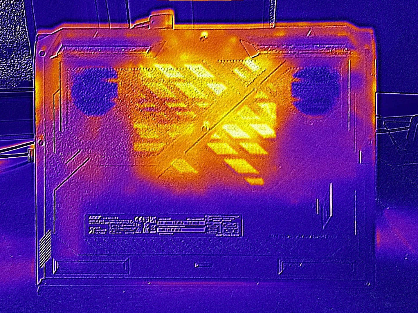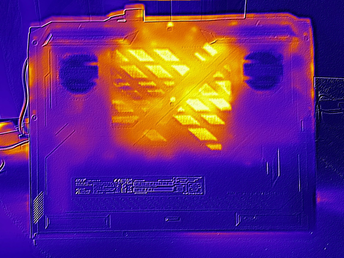 Nitro V 16 mógł działać lepiej pod względem temperatur powierzchni. Maksymalne 59 °C na spodzie obudowy jest dość wysokie jak na urządzenie z podzespołami średniej klasy i nie nadaje się do sesji gamingowych na kolanach.